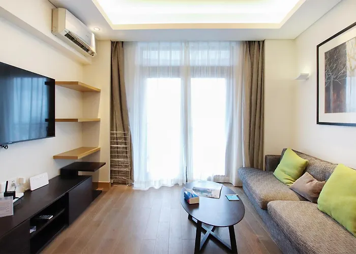 Tyms 1Br Apt Huijing Garden Shanghai ligger 2 km från Xujiahui katolska kyrka och cirka 5 minuters gångavstånd från tunnelbanestationen Jiashan Road.